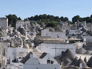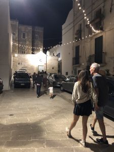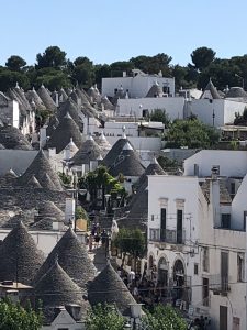 Our time on the ground wasn’t to be overlooked either. We generally woke up at 10 (the early risers) to 12 (me, and the other severely jet lagged). On one of our first days, we drove up to Alberobello- a quaint, touristy town built in early Italy, much like our rental home. It was beautiful, with colorful streets lined with cute shops, and a park with a band playing at the top of the hill, where we amused Matteo with his red and white ball and orange and silver scooter. It would have been just a cute town, if it hadn’t been made famous for its unique architecture.